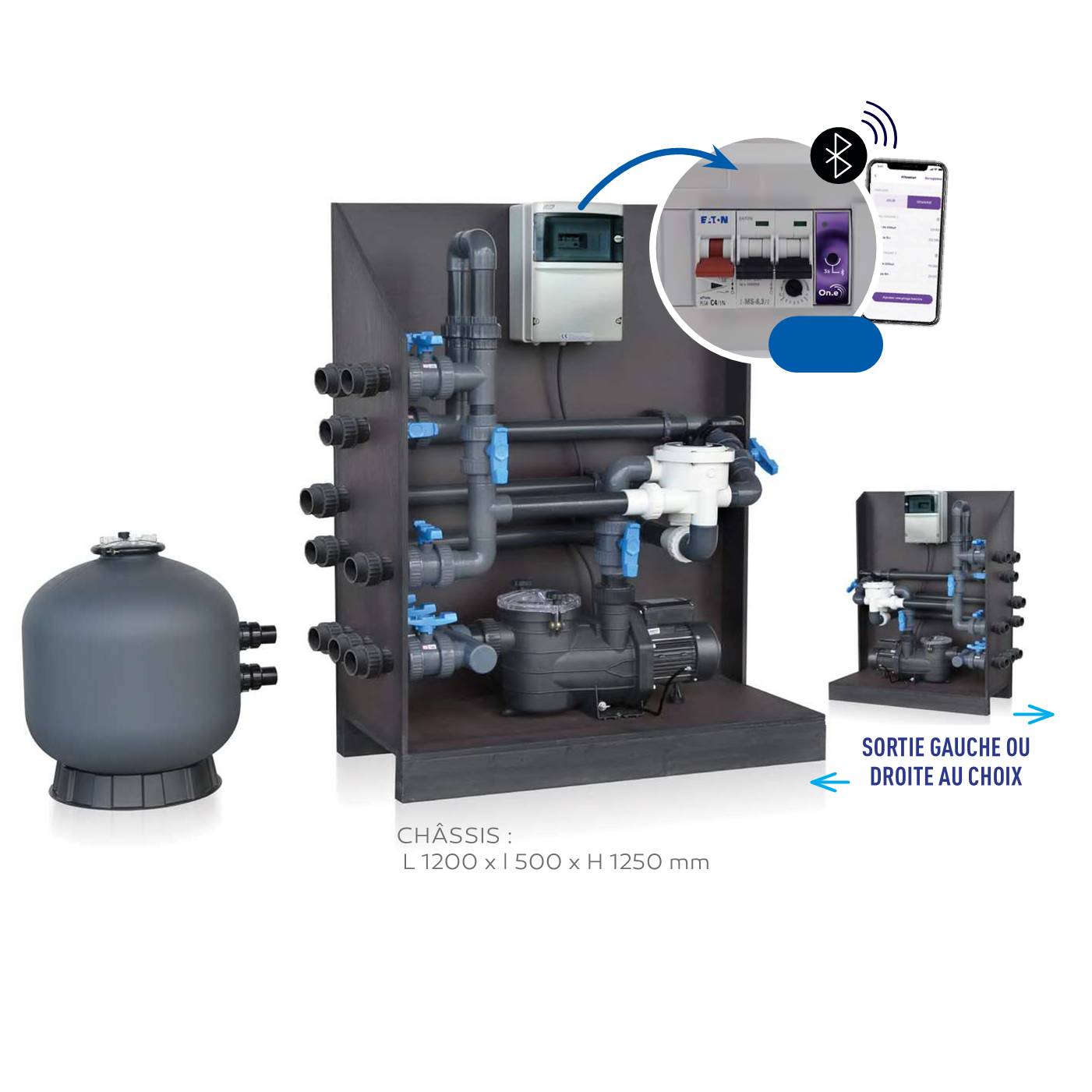 • Anschlussfertiges Filtersystem mit freistehendem Filter, seitliches 6-Weg Ventil