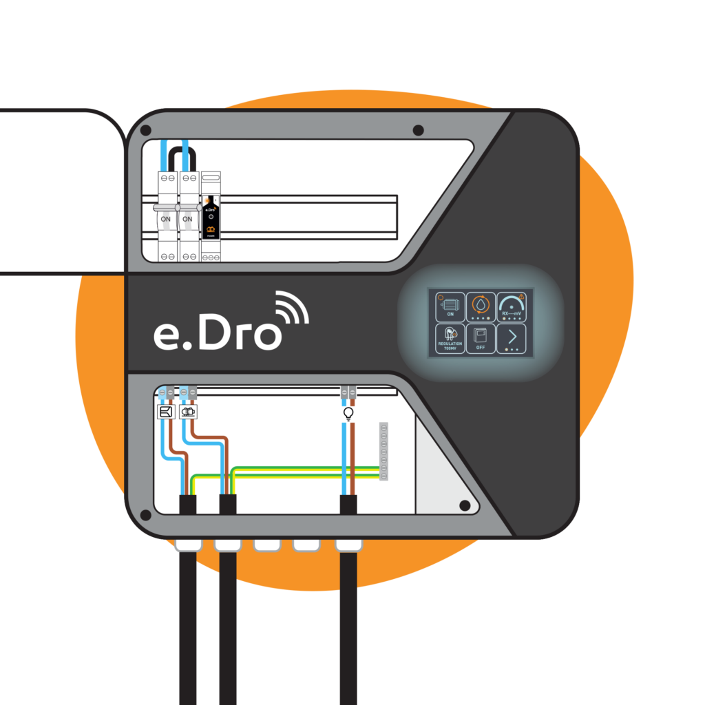 Gehen Sie auf Abstand zu Ihrem Pool! Wenn Sie e.Dro Connect in Ihre e.Dro-Installation einbauen, können Sie alle Parameter Ihres Pools aus der Ferne steuern, um auch bei Abwesenheit für klares Wasser zu sorgen.